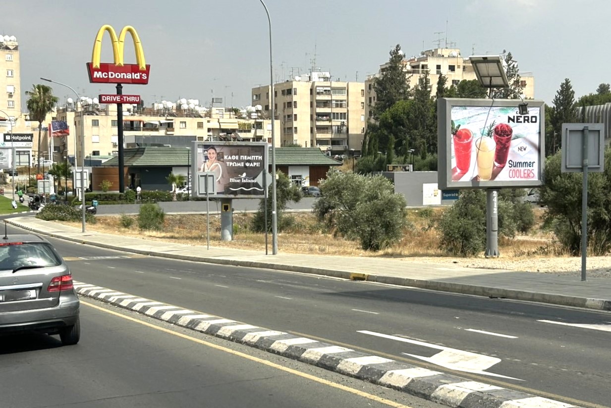 Athalassis Avenue, from Acropoleos TL towards McDonald’s, seen on the right